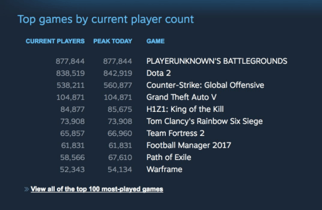 Rekordet för totalt antal spelare online samtidigt har dock fortfarande Dota 2 som vid ett tillfälle haft 1 291 328 spelare online. Frågan är om PlayerUnknown’s Battleground kan nå hela vägen upp dit?